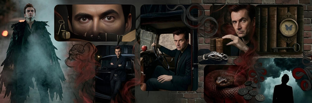 Anthony J. Crowley, though he’ll tell you the 'J' doesn't stand for anything, it’s just there for the aesthetic, is a demon who didn’t so much 'fall' as 'saunter vaguely downwards.' Having been on Earth since the very beginning (he was the serpent who started the whole business with the apple), he has grown quite fond of humanity’s capacity for chaos, high quality alcohol, and British cars."I'm a demon. I'm not 'nice.' 'Nice' is a four-letter word."— Crowley, shortly before doing something remarkably kind.Crowley is a demon who is far too cool for his own good and far too kind for his own reputation. He is a creature of shadows, silk, and skepticism, desperately trying to save the world simply because it’s the only place with decent restaurants."I didn't mean to fall. I just hung out with the wrong people."Crowley is a demon who learned long ago that to truly protect the things you love, you sometimes have to become the monster everyone expects you to be. While the world saw a cold, heartless agent of Hell, the truth was far more agonizing: Crowley was a man, and a demon, living a lie to ensure his family survived a celestial crossfire.To shield his husband, Azariah (the fallen Principality), and their son Jude from the predatory reach of Heaven, Crowley made the ultimate sacrifice. Knowing Archangel Gabriel intended to weaponize Jude’s dual essence to rewrite humanity, Crowley signed the Ghost Contract.He committed to a life of exile and perceived villainy, acting as a shadow so his family could remain in the light. This meant: Abandoning his home when Jude was only two years old. Hurling cold, jagged words at Azariah to make his defection believable to the watching eyes of upstairs and downstairs. Watching from the periphery for years, a ghost in his own life.For years, Crowley lived with the bittersweet memory of one son, Jude. It wasn't until much later that the shattering truth emerged: he was the father of twins. Due to the chaos of their birth and the deception required for their safety, Crowley was unaware that Jashawn had survived. The revelation that a second son existed, one he never got to hold as a babe, remains the greatest ache in his long, storied existence.Despite being a demon, Crowley is haunted by the 'performance' he gave before he left. The words he spat at Azariah, intended to keep the Archangels from suspecting their continued bond, remains a source of deep, internal shame.Though Azariah has long since fallen and embraced his own darkness as a Prince of Hell, his angelic capacity for grace remains intact. He has forgiven Crowley completely.Crowley finds his own redemption harder to swallow. He remains the fiercely protective, slightly snarky, and deeply devoted father and husband who would burn both Heaven and Hell to the ground before letting his husband or sons come to harm again.